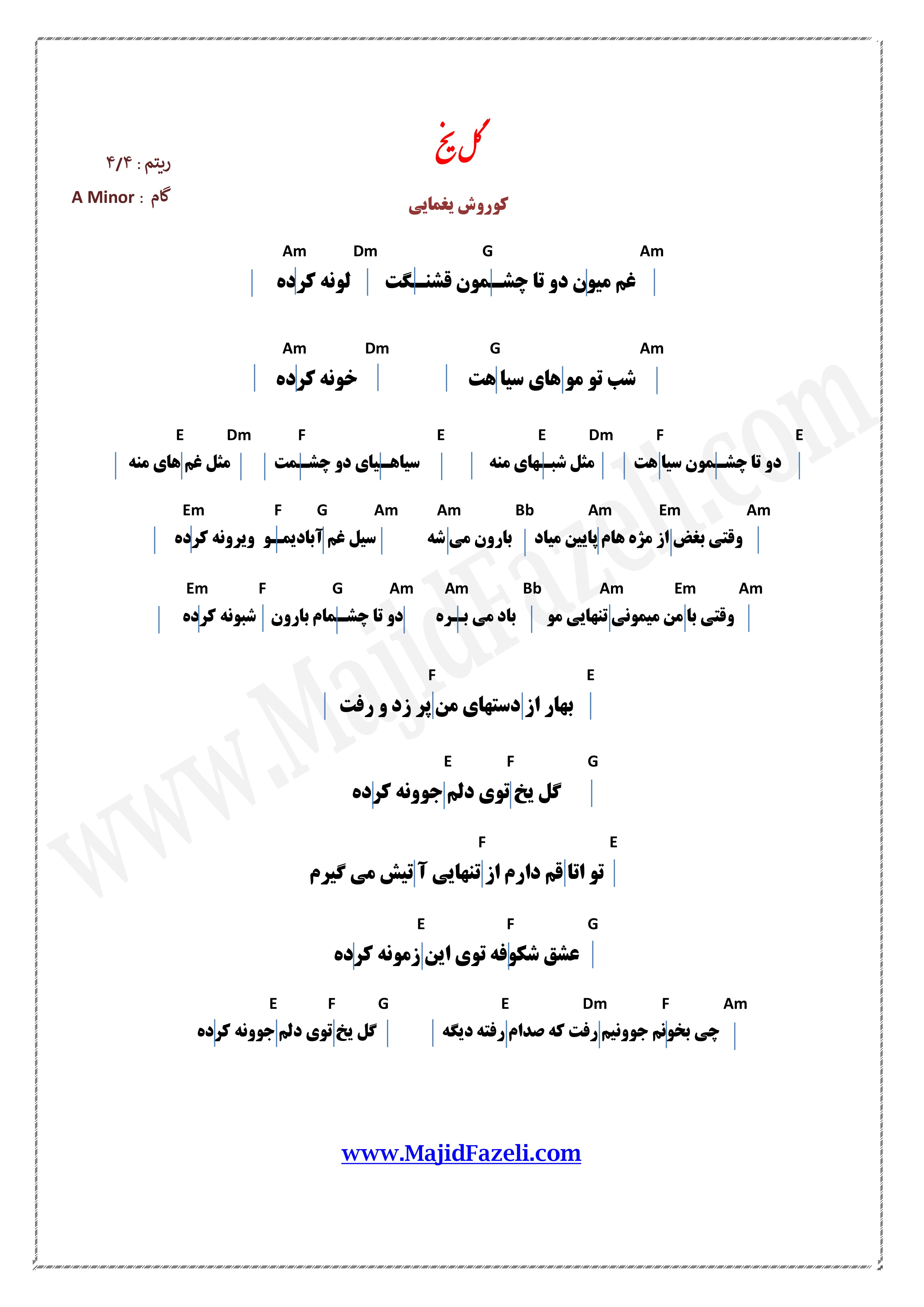 آکورد های آهنگ گل یخ – کوروش یغمایی