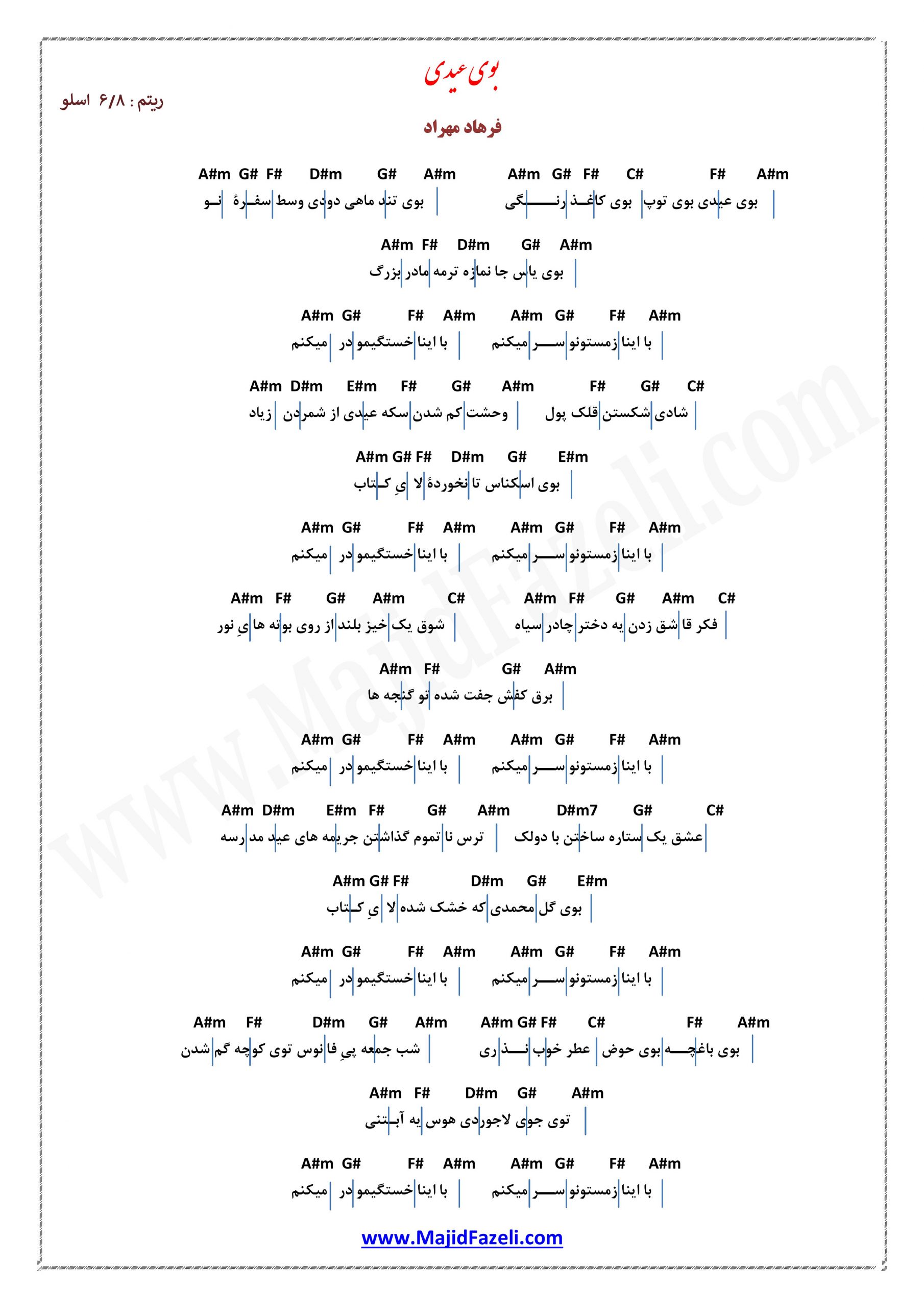 آکورد های آهنگ بوی عیدی – فرهاد مهراد