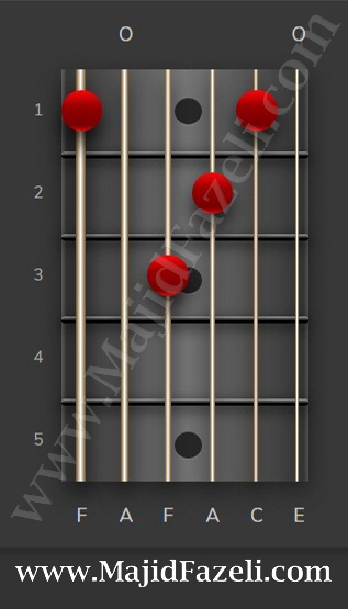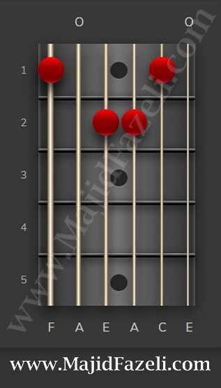 آکورد گیتار – Guitar chords – فا ماژور ۷ / Fmaj7