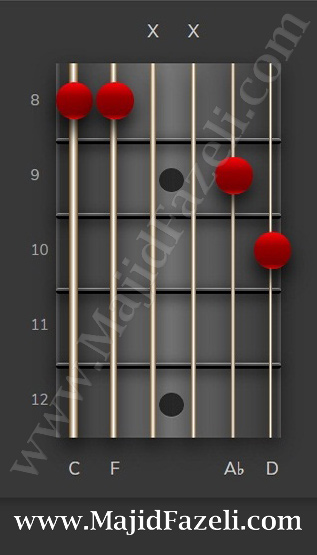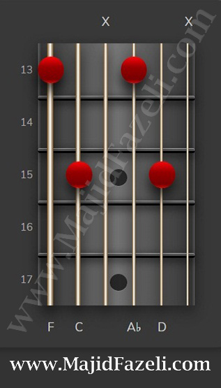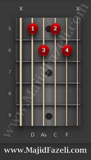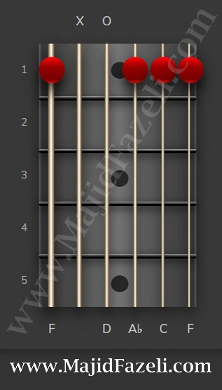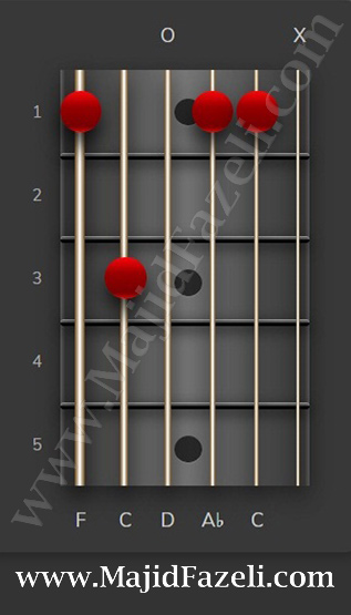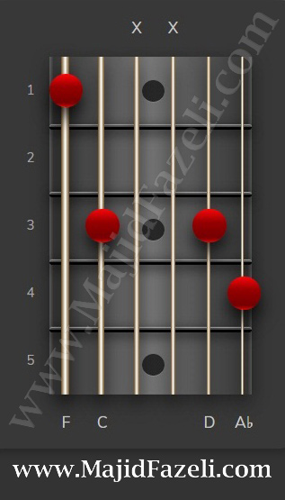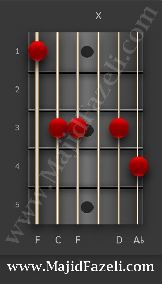 آکورد گیتار – Guitar chords – فا مینور ۶ / Fm6